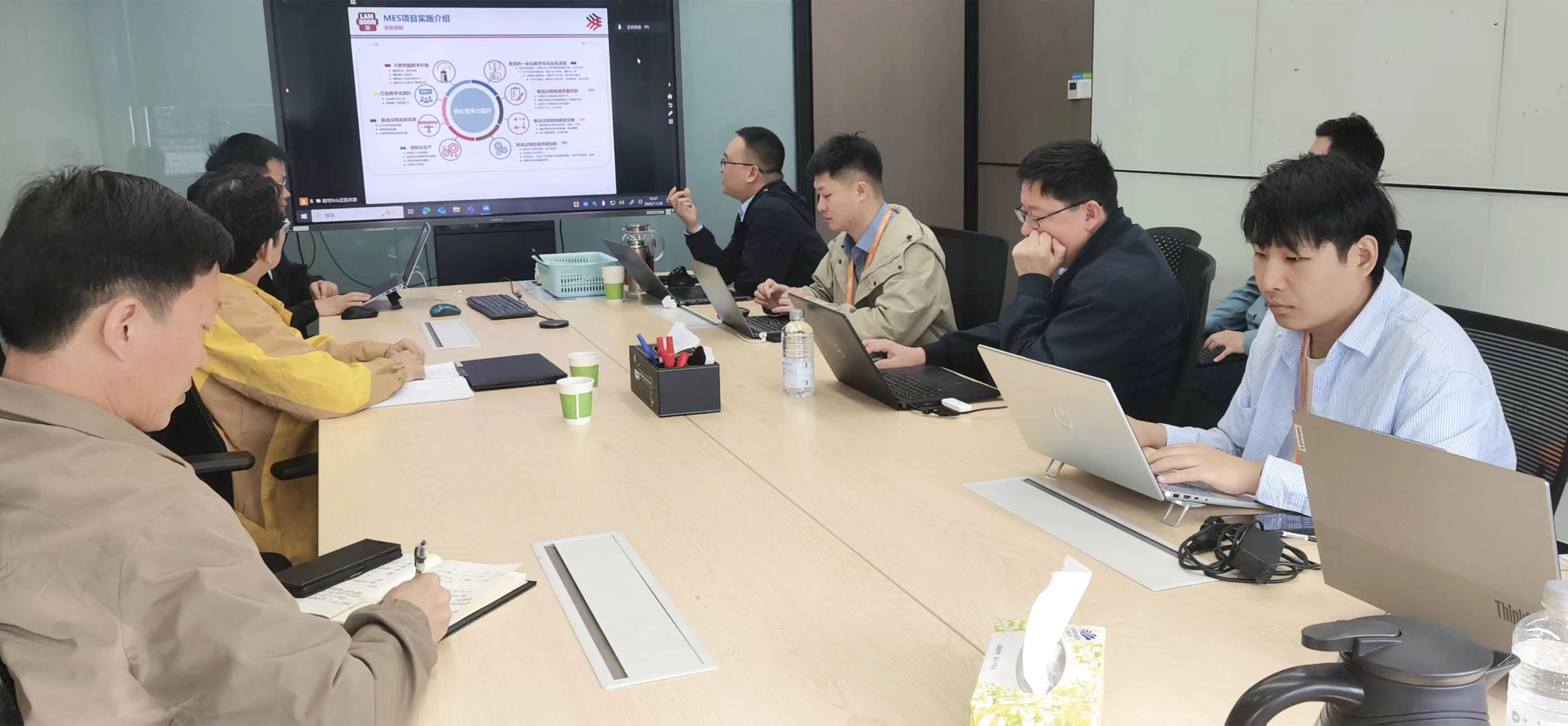 Recently, the kick-off meeting for the MES system of Lam Soon Group's Home Care Business Conghua Cleaning Products Production Facility was successfully held in Panyu, Guangzhou. Mr. Fu, Director of Supply Chain and Mr. Li, Director of Information Technology of Lam Soon Group, Mr. Zhiwei Dong, Deputy General Manager and Mr. Zhengyu Song, Director of R&D Center of Wellthinc Technology, as well as project teams from both sides attended the meeting, witnessing this milestone moment of digital cooperation in the industry.